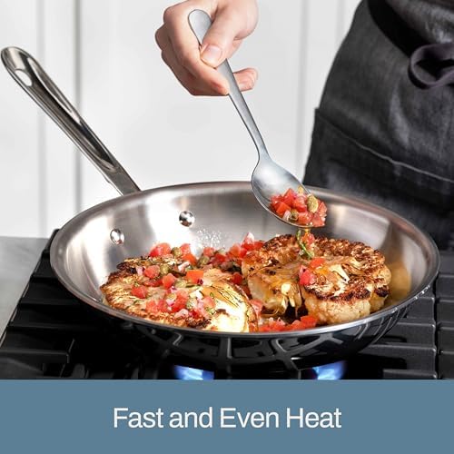 Built with All-Clad’s signature D3 tri-ply bonded technology, these pots and pans offer fast, even heat distribution that is fully bonded to the rim for enhanced durability and professional-quality cooking results. The high-quality 18/10 stainless steel surface ensures excellent searing capabilities and is perfect for deglazing to create flavorful pan sauces. Compatible with all stovetops including induction and oven safe up to 600F, this set is as versatile as it is robust. Classic polished stainless steel finish and double-riveted handles provide a secure, comfortable grip while adding elegant style to your kitchen collection.