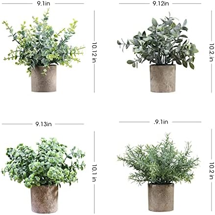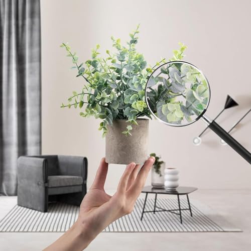 Add a touch of natural beauty to your home or office with the Artigreen 4 Pcs Mini Faux Eucalyptus Plants set. Featuring four uniquely designed artificial plants, each pre-potted in eco-friendly paper pulp pots, these lifelike plants come with a white coating on the leaves that mimics natural frost, enhancing their realism. Measuring approximately 25.9cm high by 23cm wide, they fit perfectly on desks, coffee tables, shelves, or bathrooms without taking up much space.