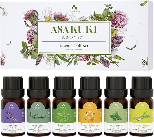 Indulge in the benefits of aromatherapy with the ASAKUKI Essential Oils Starter Kit and transform your daily routine into a peaceful, rejuvenating experience.