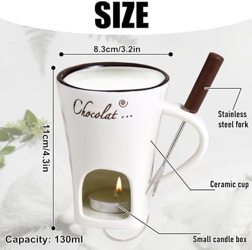 Enjoy rich and creamy fondue experiences with the BAISHUWU Chocolate Fondue Mug Set, crafted from high-quality ceramic that ensures a safe food touch and effortless cleaning. Its durable, glazed surface prevents sticking and supports microwave and dishwasher use, making it perfect for melting chocolate, cheese, butter, caramel, and more.