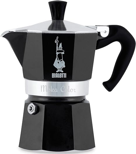 The Bialetti Moka Express is designed for ease of use and safety. Featuring a sturdy black plastic handle and an additional side handle, it ensures comfortable carrying and pouring. Compatible with both gas and electric burners, it allows you to prepare fresh coffee effortlessly. Just be sure to position the pot so the handle stays away from heat sources to maintain its integrity.