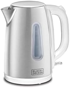 The BLACK+DECKER 2200W Cordless Electric Kettle offers fast boiling performance with its high-power 2200 watt heating element. Its generous 1.7 liter capacity is perfect for preparing multiple cups of tea, coffee, or other hot beverages quickly, making it a great addition to any kitchen or office space.