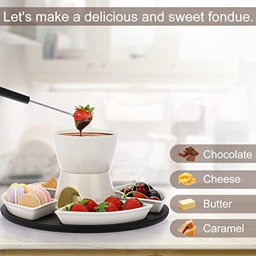 Elevate your dessert experience with the BSTKEY White Ceramic Chocolate Fondue Pot Set. Crafted from premium ceramic, this fondue pot offers excellent heat resistance and durability, making it perfect for melting chocolate, cheese, butter, or caramel. Its 300ml capacity is ideal for intimate gatherings, complemented by 4 stainless steel forks and 4 serving dishes to share delightful treats with friends and family.