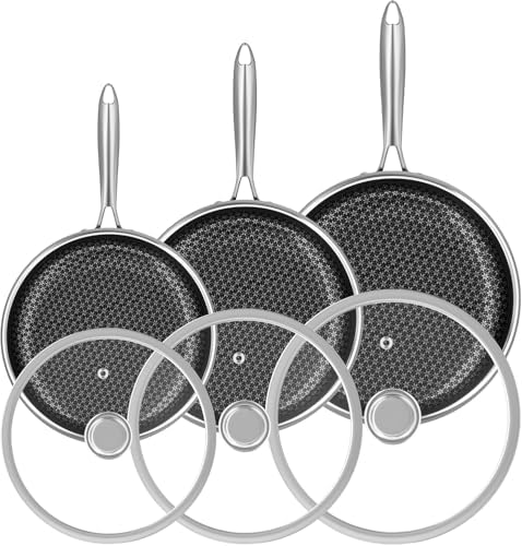Experience the perfect blend of durability and nonstick convenience with the Caannasweis Hybrid Tri-ply Stainless Steel Frying Pan Set. Crafted from high-quality stainless steel, this set includes versatile 8 inch, 10 inch, and 12 inch skillets designed for everyday cooking. The pans feature a unique hybrid design that combines snowflake protrusion technology with a full-coverage nonstick coating, ensuring food won’t stick while cooking and making cleanup effortless. Free from PTFE, PFOA, PFAS, lead, and cadmium, these pans guarantee safe and healthy cooking.
