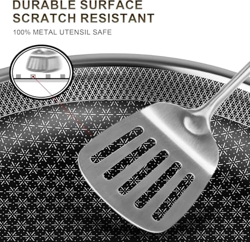Utilizing a tri-ply construction, each pan’s body layers 430 food-grade magnetically conductive stainless steel, an aluminum alloy core for optimal heat conduction, and inner food-grade 304 stainless steel for excellent food safety. This design delivers even heat distribution and outstanding durability that lasts for years. The pans are equipped with screw-fixation detachable stainless steel handles that remain cool to the touch, offering secure and comfortable handling. Ideal for frying breakfast, lunch, or large family meals, this cookware set brings convenience and efficiency to your kitchen.