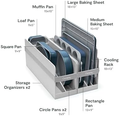 Caraway prioritizes your health and the environment by eliminating harmful substances such as PTFE, PFOA, PFAS, lead, and cadmium from their non-toxic bakeware coatings. You can bake confidently knowing your meals stay free from toxic chemicals. Engineered to endure oven temperatures up to 550 degrees Fahrenheit, this set is built for long-lasting kitchen use. After baking, the pieces clean up effortlessly with a simple hand wash and neatly store away using the included organizers.