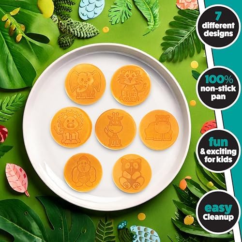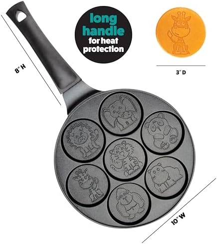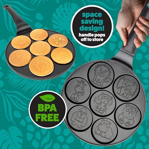 Start your mornings with a splash of creativity using the CucinaPro Animal Mini Pancake Pan. This unique griddle features 7 adorable zoo animal designs including a hippo, lion, tiger, elephant, gorilla, panda, and giraffe. Perfect for kids and adults alike, this pan transforms ordinary pancake making into a fun, artistic breakfast experience that brings smiles to the table.