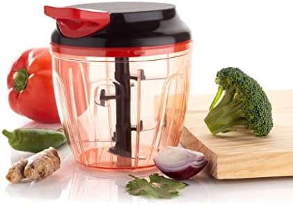 The Delcasa 6-Blade Indian Smart Pull Chopper with Paddle Attachment is designed to make food preparation quick, easy, and mess-free. Featuring six razor-sharp, rust-resistant stainless steel blades, this manual pull chopper swiftly chops vegetables and herbs while minimizing clean-up. Its ergonomic pull button with a comfortable grip offers a quieter and effortless chopping experience, perfect for everyday use in any kitchen.