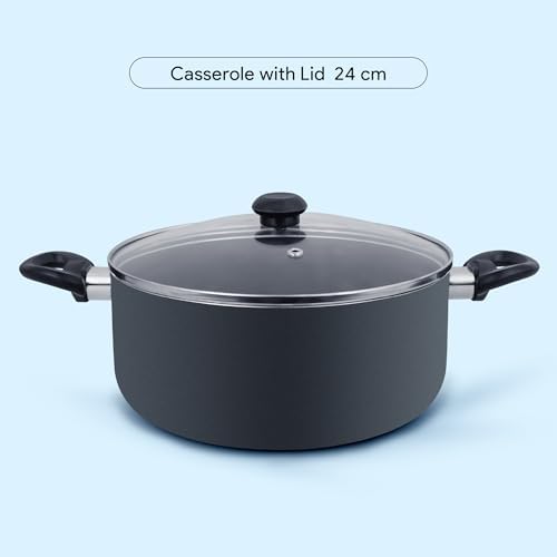 • Includes 24cm casserole and 18cm saucepan with lids, 24cm frypan