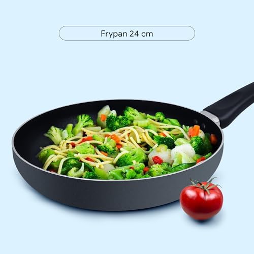 • Cookware Pieces: 24cm casserole with lid, 18cm saucepan with lid, 24cm frypan