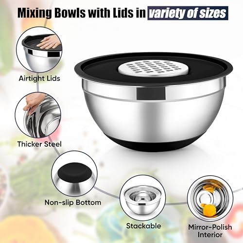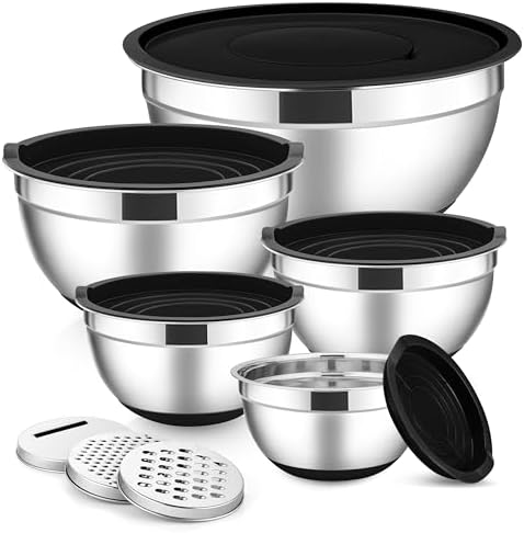E-far Stainless Steel Mixing Bowl Set with Lids and Graters