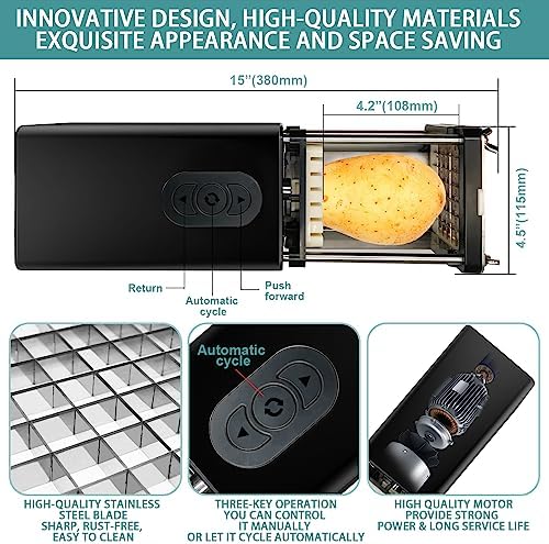 The Fstcrt Electric French Fry Cutter offers a powerful and convenient solution for slicing potatoes, carrots, cucumbers, and more. Powered by electricity, it saves time and effort compared to traditional manual cutters, making it perfect for busy kitchens both at home and in commercial settings. Its compact design ensures it fits comfortably on your countertop without taking up much space.