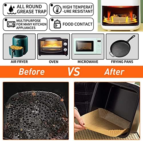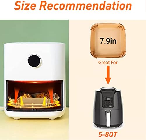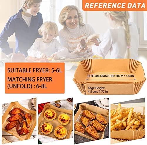 Fuwnvuwn Air Fryer Disposable Paper Liners are crafted from premium food-grade parchment paper, ensuring a safe and healthy cooking experience. These waterproof, oil-proof, and non-stick liners withstand temperatures up to 428°F, keeping your air fryer clean without affecting your food’s flavor. The 4.5cm raised edges help protect your air fryer’s sides while preventing food from sticking, making cleanup effortless and saving you time.