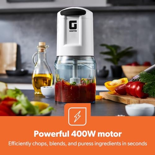 The Geepas Mini Food Processor features a robust 400W motor designed to chop, blend, purée, and mix a wide range of ingredients quickly and efficiently. Whether you’re preparing salsa, sauces, dressings, or baby food, this compact appliance delivers the perfect texture consistently, saving you time in the kitchen.