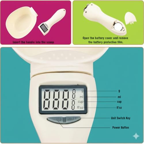 Featuring a clear LCD display, this portable food scale spoon gives instant weight results for fast, reliable measurements. Its detachable scoop design makes cleaning effortless and hygienic, suitable for daily use in kitchens or while traveling. Compact and lightweight, it easily fits in drawers and is perfect for meal prep, baby formula, protein powders, and pet foods.