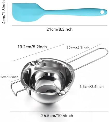 This melting bowl includes a vibrant blue spatula designed for effortless stirring and scraping, making your cooking or crafting experience seamless. Whether you’re a passionate baker, chocolatier, or DIY soap maker, this water bath bowl is ideal for precise temperature control and reducing the risk of burning delicate ingredients. Its stylish silver finish fits comfortably into any kitchen or craft space.