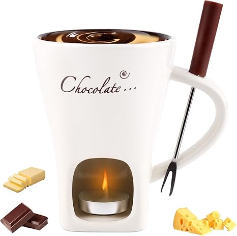 - Includes ceramic melting cup, tealight, and dipping fork