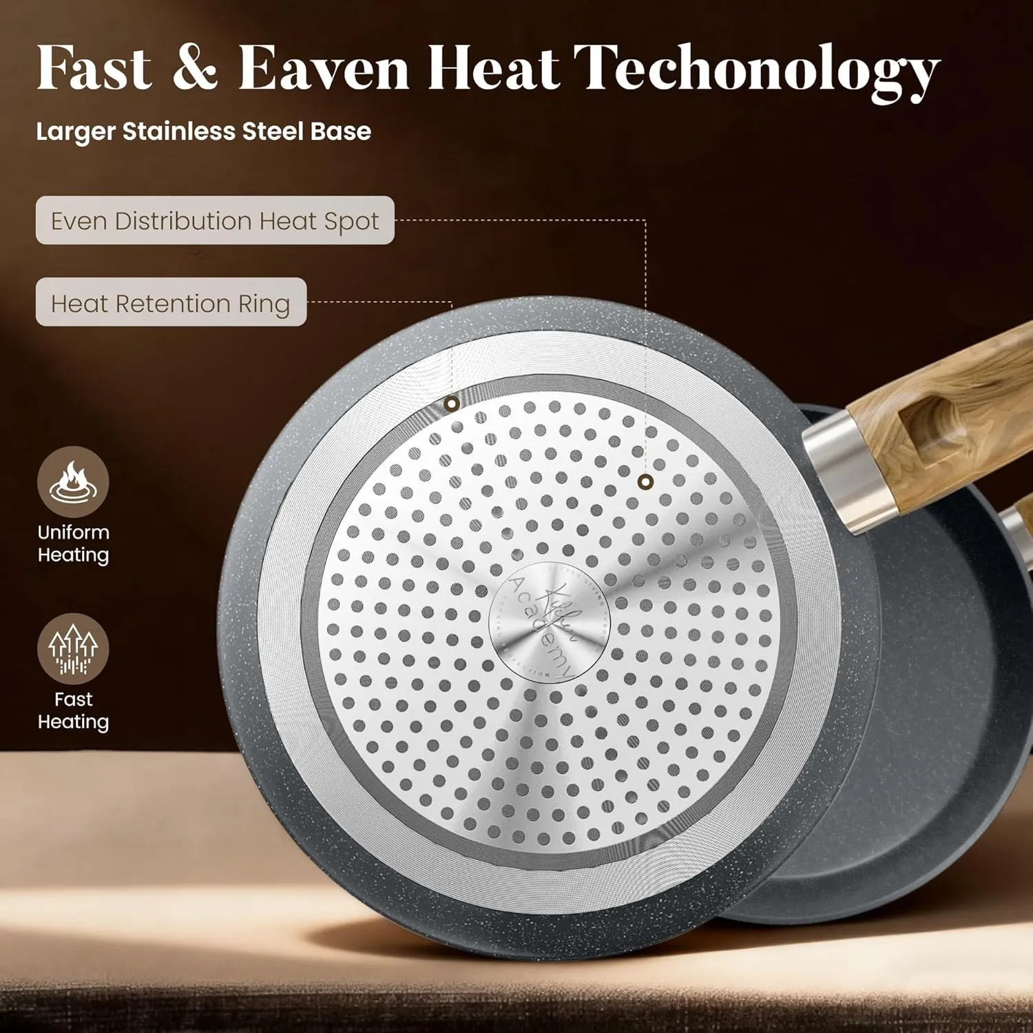 This Kitchen Academy 12-Piece Induction Cookware Set is designed for modern UAE kitchens, offering durable granite-coated pans made for effortless everyday cooking. Built with a premium nonstick surface, each pot and pan ensures smooth food release and easy cleaning, even with minimal oil. The sturdy induction-ready base provides quick and even heat distribution, delivering reliable performance across all hob types.