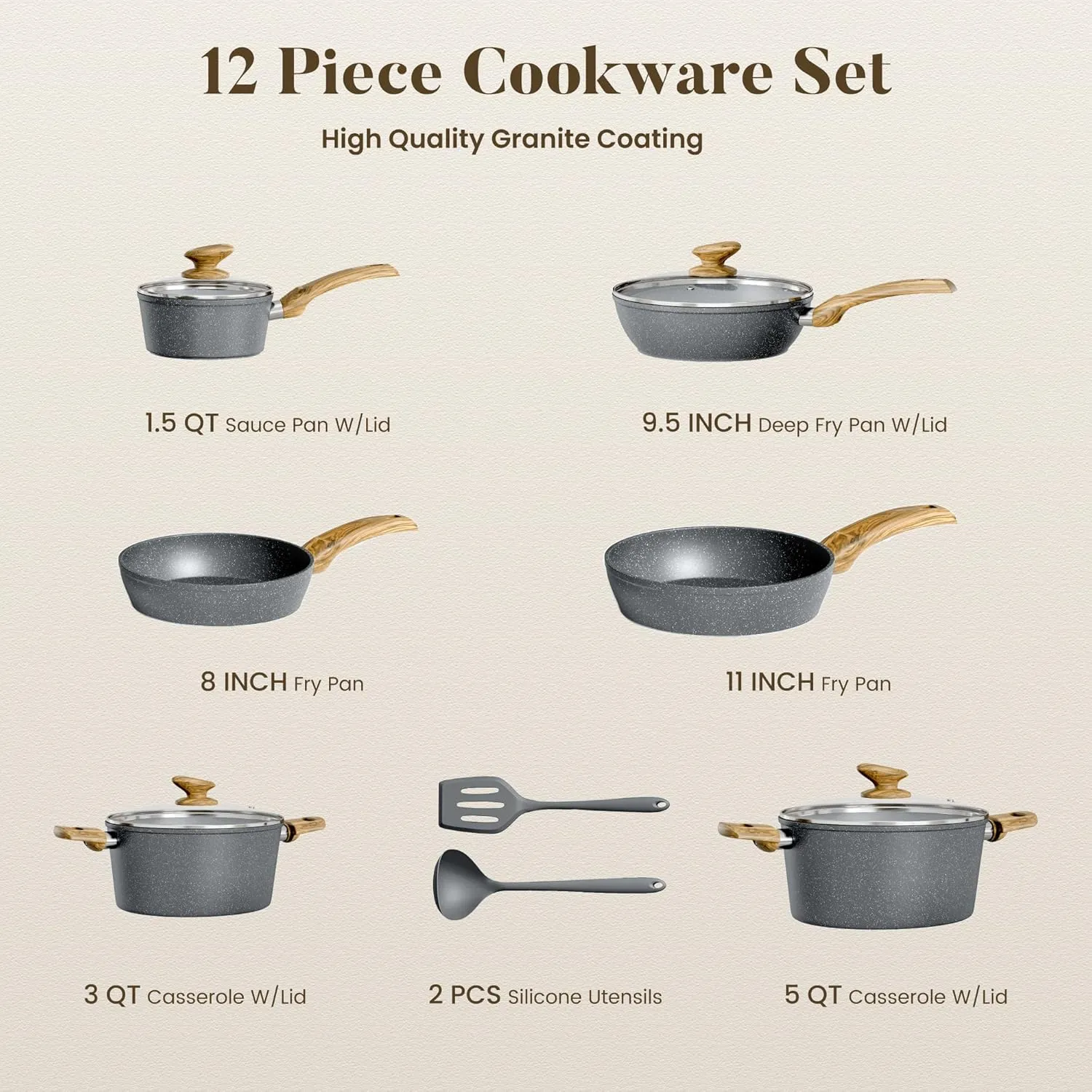 • 12-piece induction-ready granite cookware set