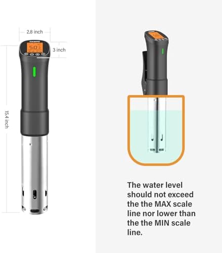 Powered by a robust 1000W heating element and built with durable stainless steel, this sous vide cooker rapidly heats water and maintains a consistent temperature with an accuracy of 0.1℃ / 1℉ within a range of 0℃-90℃ / 32℉-194℉. Its user-friendly design fits securely on your pot, making gourmet cooking straightforward. The built-in water shortage protection automatically stops operation if water levels drop too low, providing peace of mind during extended cooking times. Explore customizable recipes on the app to expand your culinary creations.