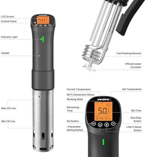 The Inkbird Wifi Sous Vide Machine ISV-200W offers an effortless way to achieve restaurant-quality meals at home. Connect seamlessly to a 2.4GHz Wi-Fi network and control every cooking detail remotely through the intuitive INKBIRD Pro app. Whether you’re fine-tuning temperature or adjusting the timer, this immersion circulator empowers you to monitor progress from anywhere, ensuring perfect cooking without the need to stay by the stove.