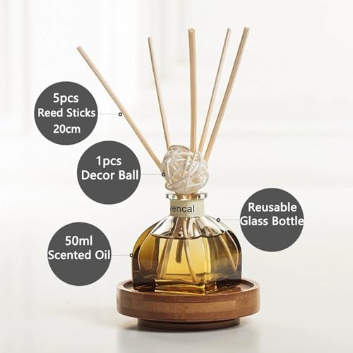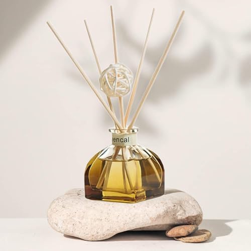 Enhance your living spaces with the Jsofd Reed Diffuser Set, a perfect blend of style and functionality. Featuring a 50ml semi-transparent light amber glass bottle, this diffuser not only adds a modern touch to your bathroom, bedroom, or office but also offers continuous fragrance for up to 60 days. The set includes five premium reed sticks and a decorative rattan ball designed to distribute scent evenly, creating a welcoming atmosphere in any room.