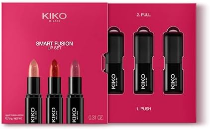 Enhance your lip game with the KIKO Milano Smart Fusion Lip Set 02, featuring three luxurious lipsticks in a variety of beautiful shades. Each lipstick delivers a creamy, nourishing formula that glides on smoothly, providing medium to high coverage with a glossy finish that lasts all day. Perfect for daily wear or special occasions, this set offers versatile colors to match any outfit or mood.