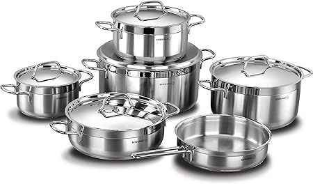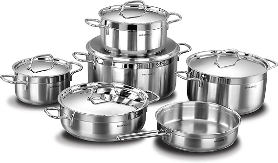This versatile cookware set includes pots and pans that cater to a wide range of cooking needs — from boiling and frying to simmering and sautéing. Its induction compatibility ensures it works seamlessly on all cooktops, while the durable stainless steel material resists rust and staining for long-lasting performance.