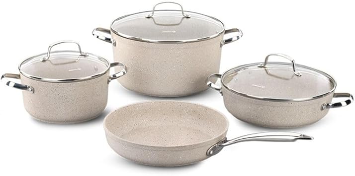 This practical set includes three casseroles of varying sizes, a wok, a frying pan, and three lids, providing everything you need to prepare meals for family and friends. The excellent PTFE granite-effect non-stick coating guarantees effortless food release and easy cleanup, whether you’re simmering, frying, or sautéing. Dishwasher safe and built for convenience, it’s an ideal choice for both novice cooks and culinary enthusiasts.