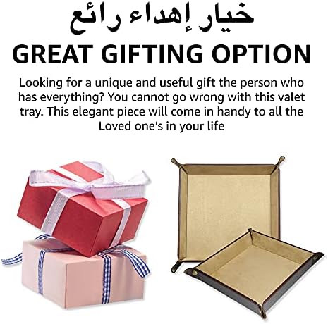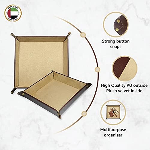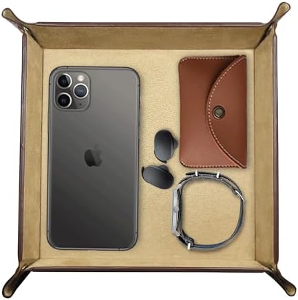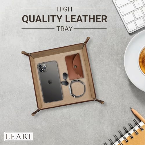 The LEART Leather Valet Tray Organizer combines style and function with its premium faux leather exterior and plush velvet interior. Designed to keep your essentials neatly organized, this tray is perfect for desks, bedside tables, dressers, or nightstands. Its sophisticated tan brown color adds a touch of luxury to any space, making it an ideal accessory for both men and women.