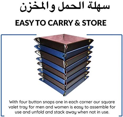 This multipurpose valet tray is perfect for storing keys, wallets, watches, jewelry, coins, mobile phones, cosmetics, and even TV remotes. The sturdy button snaps allow it to fold flat for easy travel or storage. Crafted with durable stitching and high-quality materials, this tray is built to last while maintaining its stylish look, making it a great gift option for loved ones or a practical treat for yourself.