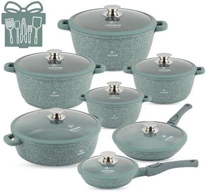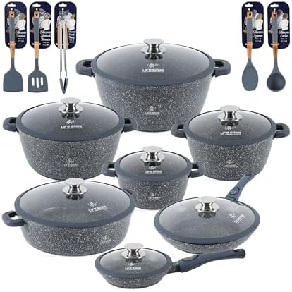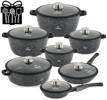 LIFE SMILE Granite Non-Stick Cookware Set – 29 Pieces