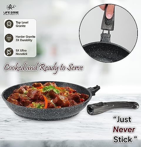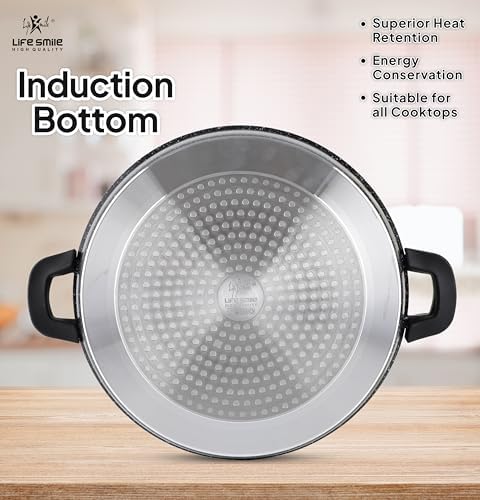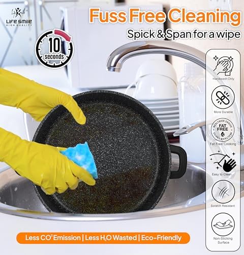 Enjoy peace of mind with the 1-year LIFE SMILE guarantee, paired with eco-friendly, PFOA-free construction for a safer, healthier cooking experience. Whether simmering sauces or frying your favorite dishes, this cookware set promises durability, style, and performance for your culinary needs.