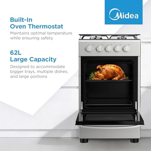 The Midea 50x55cm Freestanding Gas Cooker is an excellent choice for home cooks seeking a balance of safety, functionality, and style in their kitchen appliances.