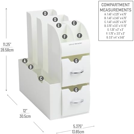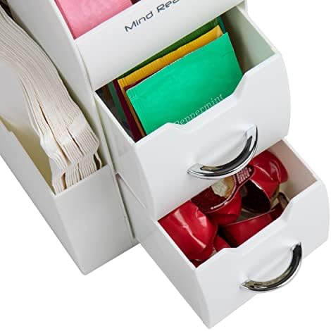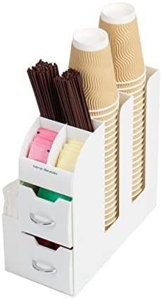 The Mind Reader Coffee Bar Cup and Condiment Organizer is the perfect accessory to keep your coffee, tea, and condiments neatly arranged without taking up too much countertop space. Measuring 5.35 inch long by 11.25 inch wide and 11.15 inch tall, this compact station maximizes storage in small kitchens, office break rooms, cafes, or hotel coffee bars. Its thoughtfully designed multiple compartments and drawers provide a versatile solution for organizing not only stirrers and condiments but also small office supplies or personal accessories.