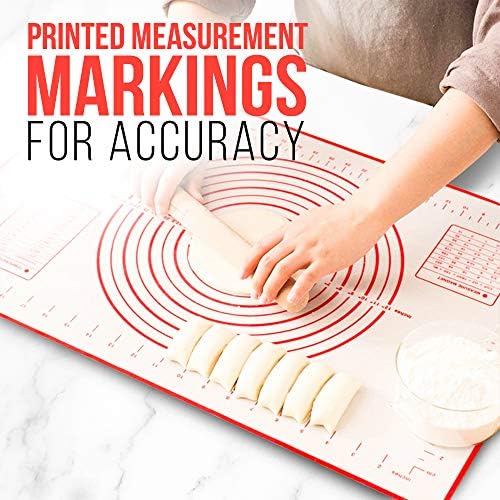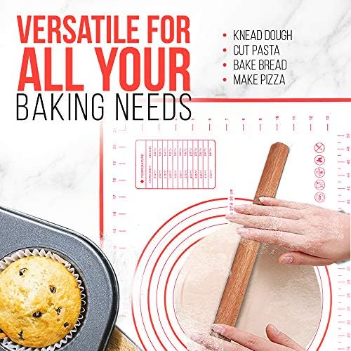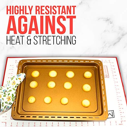 Featuring clear measurement markings directly on the mat, this baking sheet simplifies the process of rolling and shaping dough, perfect for pies, pizzas, pastries, bread, and more. Oven-safe up to 480 degrees F, it offers versatile baking options whether you’re kneading dough or baking delicate pastries. Its non-stick surface prevents sticking and facilitates easy release, enhancing your baking experience.