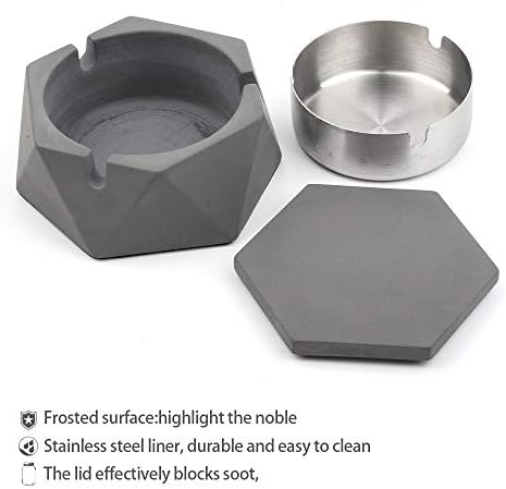 The MOSTFUN Concrete Ashtray combines sturdy concrete construction with a stainless steel inner tray, offering excellent heat resistance and flame retardant properties. Its solid material ensures long-lasting use, while the inner tray provides a safe place to extinguish cigarettes without the need for water, preserving the ashtray’s integrity.
