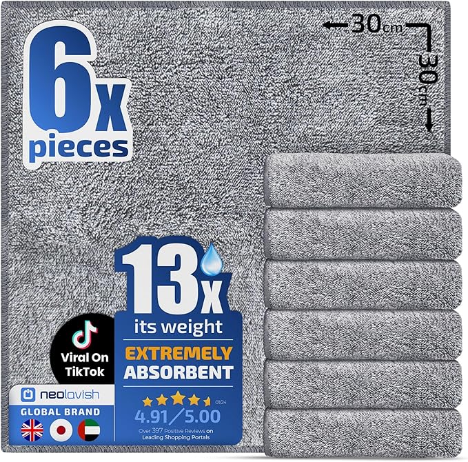 NeoLavish® Microfiber Cleaning Cloths are crafted with a premium bamboo-blend microfiber that instantly soaks up spills and dries dishes without streaks or lint. Perfect for wiping kitchen counters, polishing stainless steel appliances, and drying delicate glassware, these towels deliver spotless results every time.