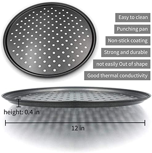Crafted from high-quality carbon steel with a durable non-stick coating, this 12 inch pizza pan set ensures even heat distribution for consistently crispy and delicious pizzas. The steel surface is scratch-resistant and treated to prevent sticking, making it ideal for baking enthusiasts who value easy food release and quick clean-up.