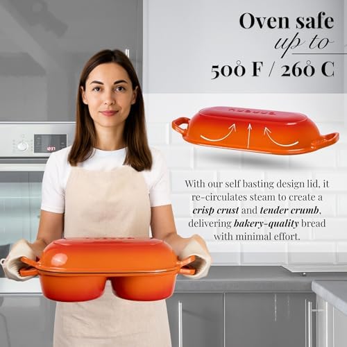 Crafted from high-quality cast iron and coated with a reinforced enamel finish, this bread pan offers exceptional durability and chip resistance. The smooth, non-stick surface makes cleanup quick and effortless, allowing more time to enjoy your fresh homemade bread. Its excellent heat retention and even distribution ensure consistently perfect baking results, producing loaves with a golden crust and moist, fluffy interior.