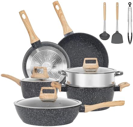 PARINGCHI Black Non-Toxic Granite Pots and Pans Set 12-Pack