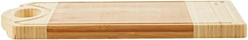 The Prestige Bamboo Cutting Board offers an ideal foundation for all your kitchen chopping needs. Crafted from eco-friendly bamboo, it provides a broad, sturdy surface perfect for slicing, dicing, and chopping fruits, vegetables, cheese, and more. Its natural brown, two-tone design adds a stylish touch that complements any kitchen decor and utensil set.