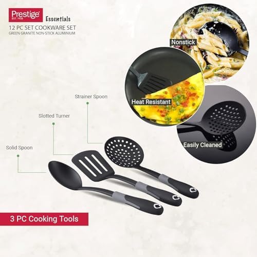 – Includes three heat-resistant cooking tools: solid spoon, slotted turner, and strainer spoon