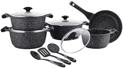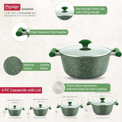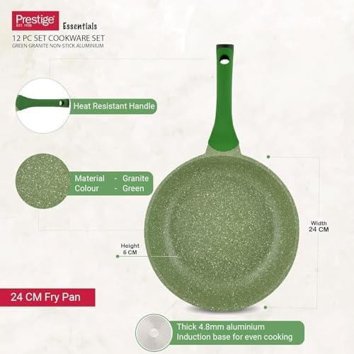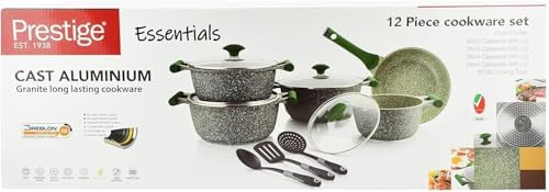 Upgrade your kitchen with the Prestige Essentials 12-piece granite-coated cookware set, designed for durability and performance in every meal. Crafted from cast aluminum with a thick 4.8mm base, this set ensures rapid and even heat distribution, reducing cooking times and energy consumption. The induction-compatible base makes it versatile for all stove types, offering convenience and efficiency.