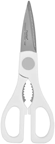 The Prestige Kitchen Scissors from Prestige Store are designed to make every kitchen task easier and more efficient. Crafted with sharp stainless steel blades, these scissors effortlessly cut through leafy vegetables, meat, and fish, enabling fast meal preparation without strain. The perfectly sized design makes them easy to handle, store, and use without requiring excessive strength.