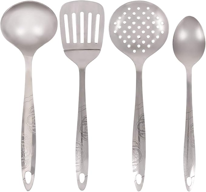 This set is perfect for a variety of cooking tasks, featuring a ladle, basting spoon, turner, and skimmer. Whether you are stirring soups, flipping pancakes, or serving pasta, these utensils deliver excellent performance and durability. Their sleek design complements any kitchen style and is easy to clean, ensuring convenience for your daily cooking routine.