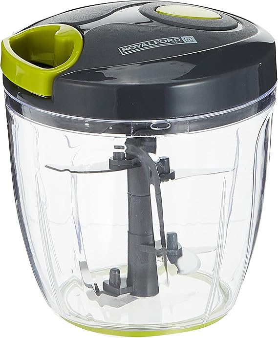 The Royalford Pull Chopper features a 900 ml capacity and a unique 5-blade design made from premium stainless steel, making it ideal for washing, spinning, and drying salad leaves, fruits, and vegetables quickly and effectively. Its sharp, durable blades ensure your greens remain crisp and fresh, enhancing your healthy eating experience. The transparent bowl doubles as a serving dish, combining practicality with style in your kitchen.