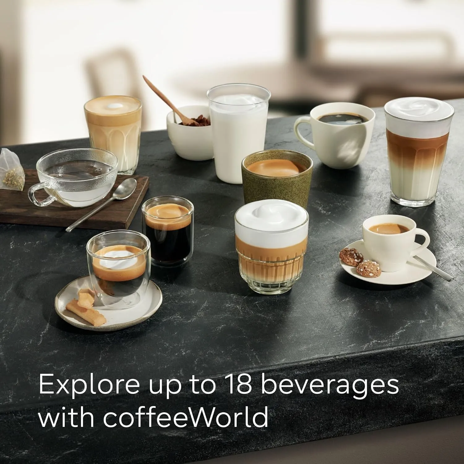 coffeeSelect Display & Home Connect: Personalise your coffee preferences easily and control your machine remotely via the Home Connect app.