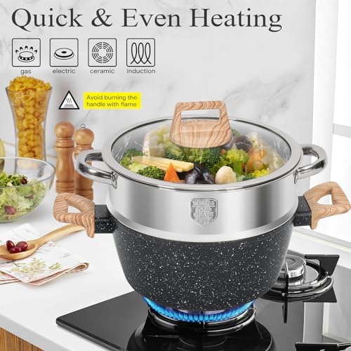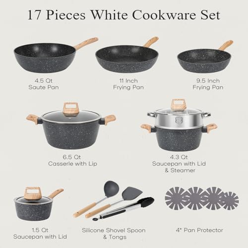 The SODAY 17-piece set includes multiple frying pans, saucepans, casseroles, a steamer, silicone tools, and pot protectors – everything needed to elevate your cooking experience. Cleaning is hassle-free; simply wipe or rinse, saving you time and water. Backed by reliable after-sale support, this cookware set is ideal for both beginner cooks and culinary enthusiasts aiming for versatile, convenient, and safe kitchen tools.