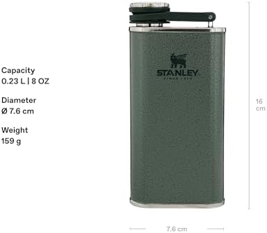 The Stanley Classic Wide Mouth Hip Flask is expertly crafted for whiskey lovers and those who enjoy carrying their favorite beverages on the go. With a capacity of 0.23 liters (8 ounces), this flask features a contoured back that fits comfortably against your body, making it easy to slip into your pocket or backpack. Its large wide mouth opening allows for effortless filling and pouring, perfect for quick refills or sharing.